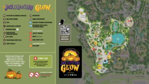 Jack O’Lantern Glow is an outdoor event featuring effects such as music, lights, and fog throughout the experience. Wait time to enter the show may vary depending on attendance.